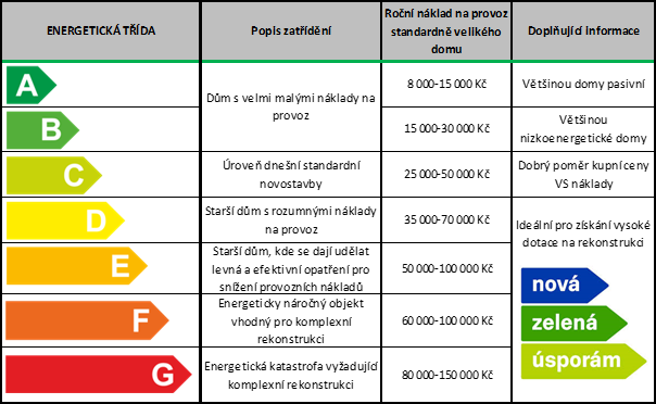 Orientační tabulka ročních nákladů na provoz rodinného domu